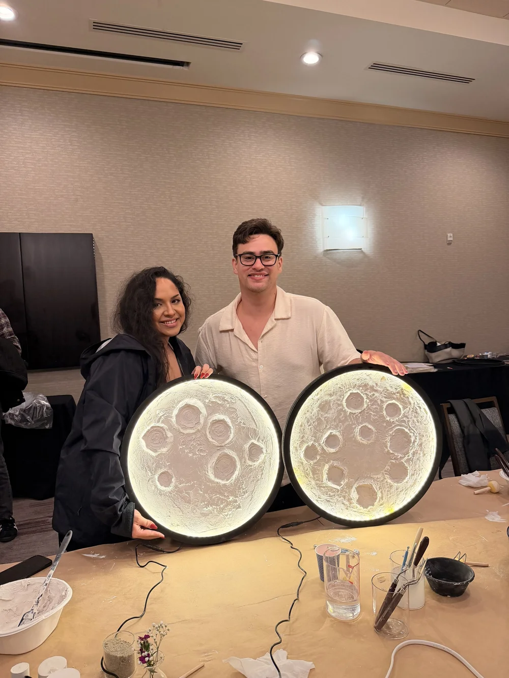 No art experience needed! You'll be guided through every step of the process: from plaster mixing and texture building to adding your LED light kit and finishing your moon for display. This is not just a workshop it's a soothing, hands-on experience where you'll walk away with your own dreamy, glowing moon sign. See you there!