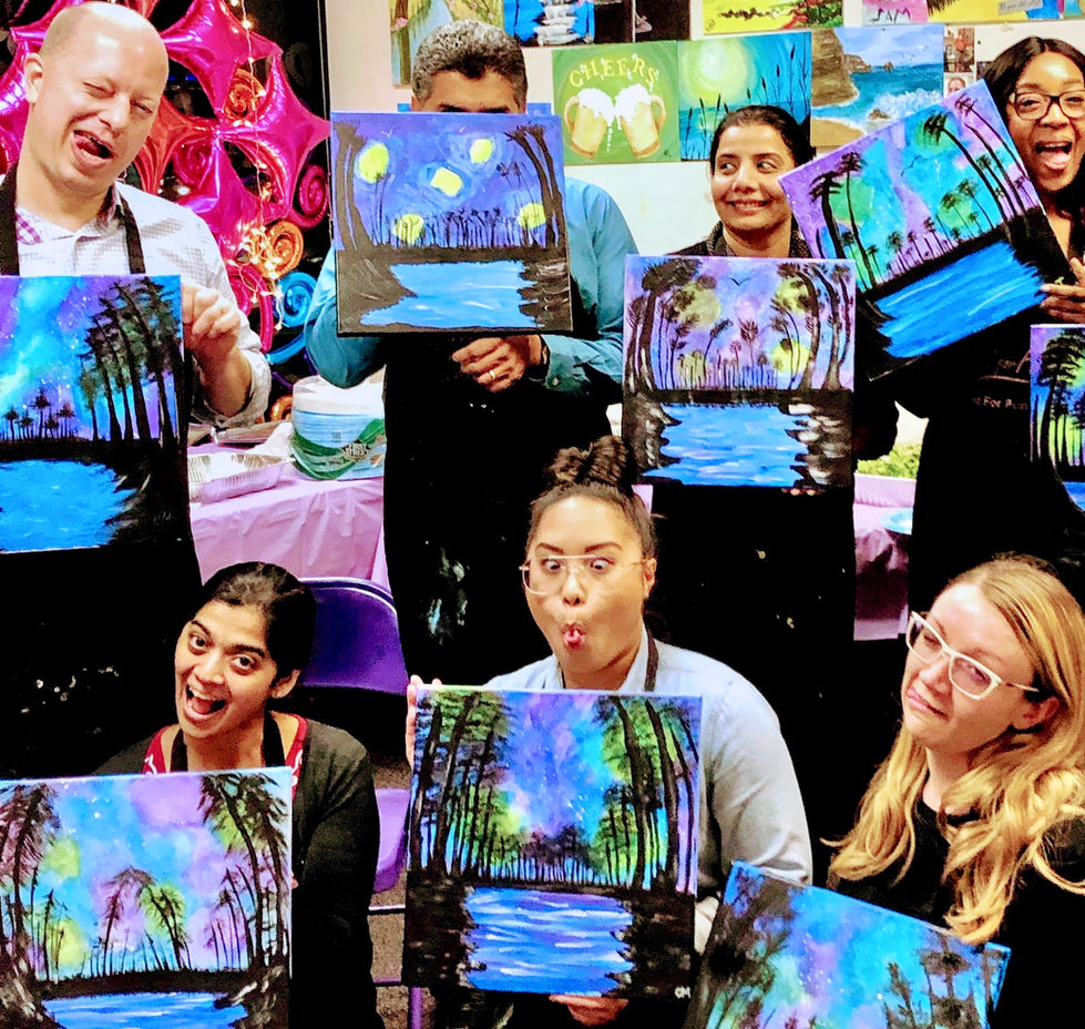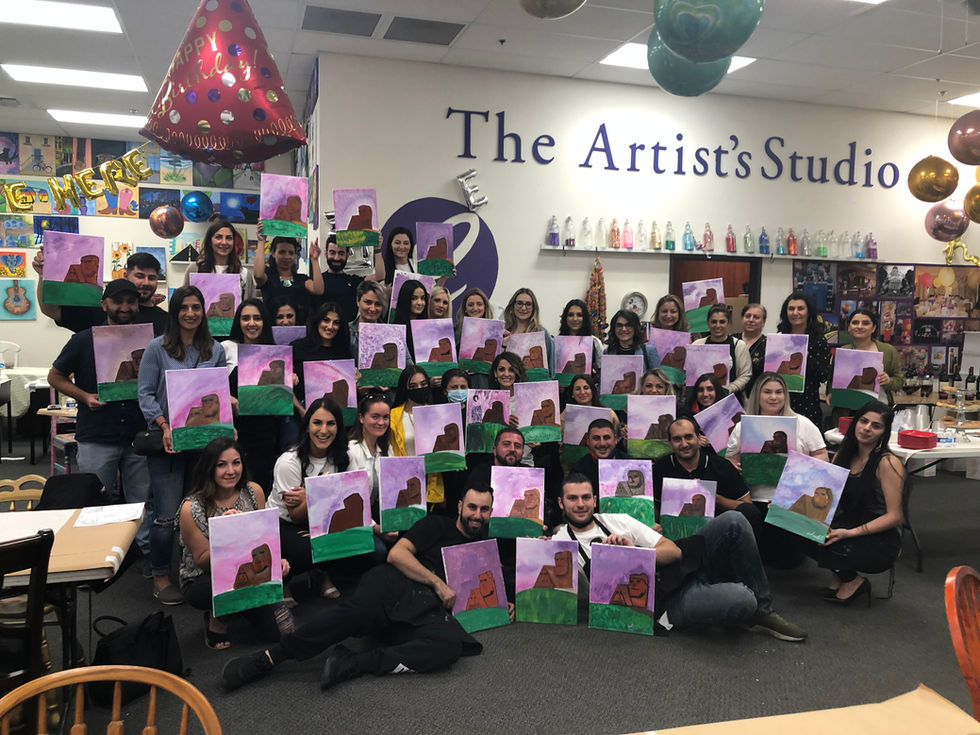 Step into The Art Of The Party venue and enter a world of creativity and fun! This image captures the vibrant atmosphere of our paint parties and special events, where guests enjoy artistic expression and memorable experiences in Sacramento